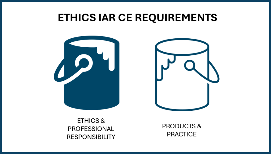 Fulfilling these two buckets — E&PR and P&P—satisfies an IAR's 12 credit Ethics IAR CE obligation.